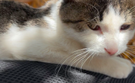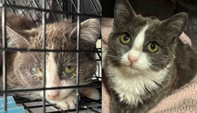 今天故事的主角是一只灰白相间的流浪猫,它是当地救助组织在一次社区常规的诱捕绝育行动中,被志愿者阿丽莎带回来的。